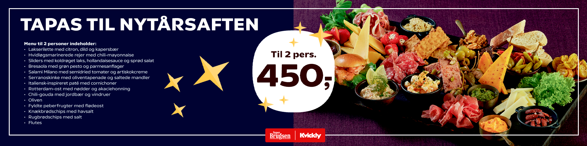 Vores slagter har sammensat en lækker tapasmenu med gode smagsoplevelser til en hyggelig aften.