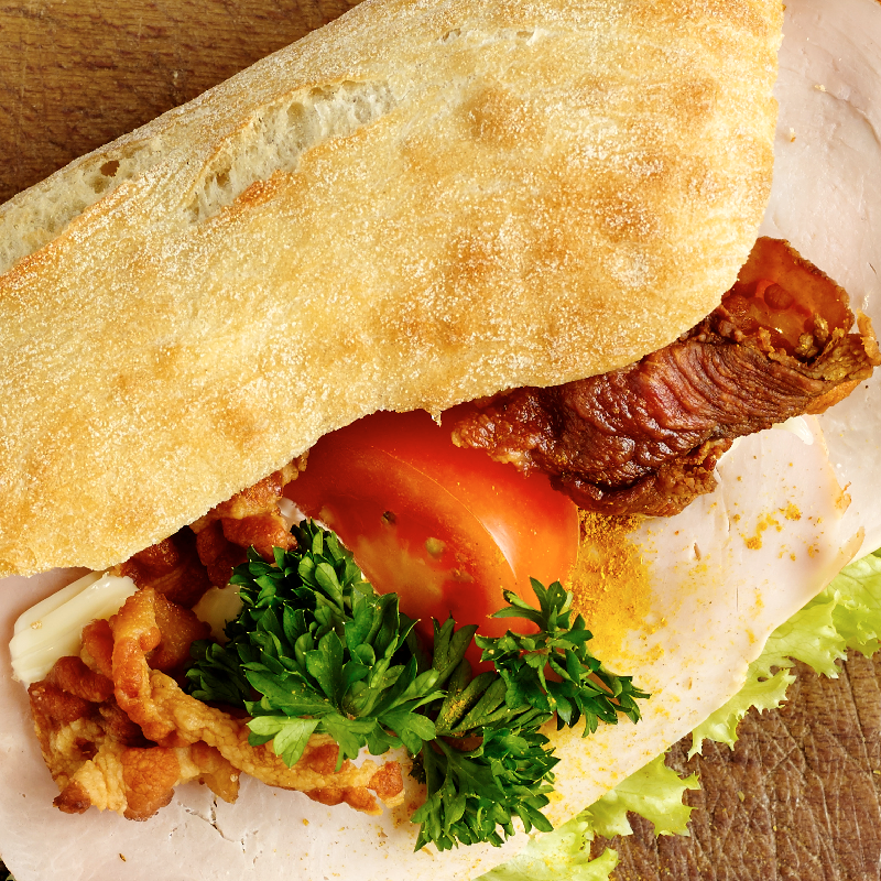I hjemmelavet brød fra Bageren. vælg selv fyld.